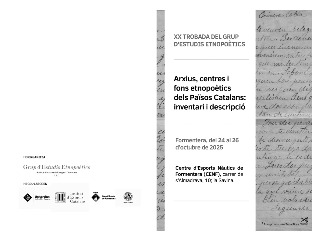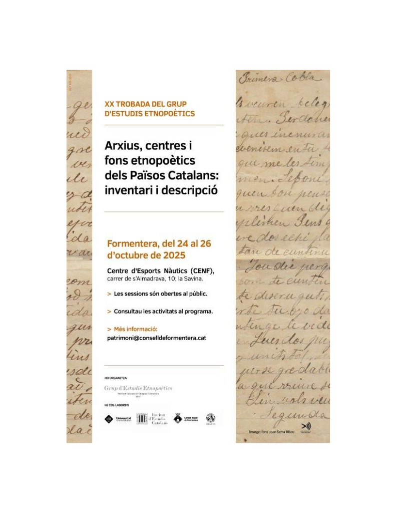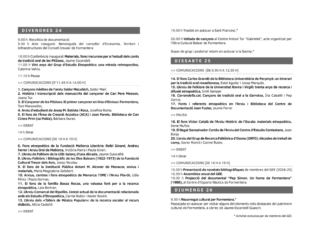 XX Trobada del Grup d’Estudis Etnopoètics (Formentera, 24, 25 i 26 d’octubre): programa final 16 oct. 2025 | Trobades GEE Programa GEE Formentera 25